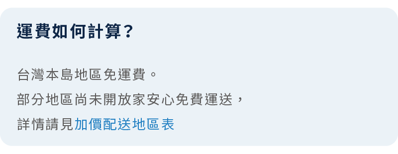 全店,全館免運(部分偏遠地區需收取運費,詳情可點擊導航列【常見問題】> 【配送運費說明】)